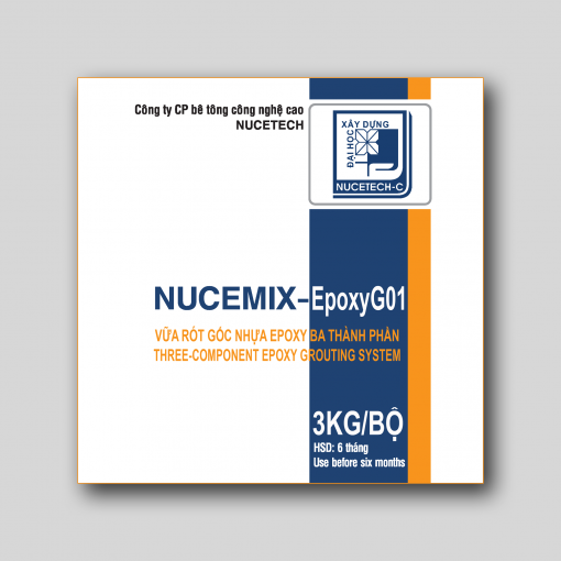 NUCEMIX-EpoxyG01 là nhựa epoxy hai thành phần dùng để trám vá, định vị. Hỗn hợp sau khi được trộn thi công lên bề mặt bê tông sẽ tạo thành một lớp vữa có cường độ cao và không thấm nước.