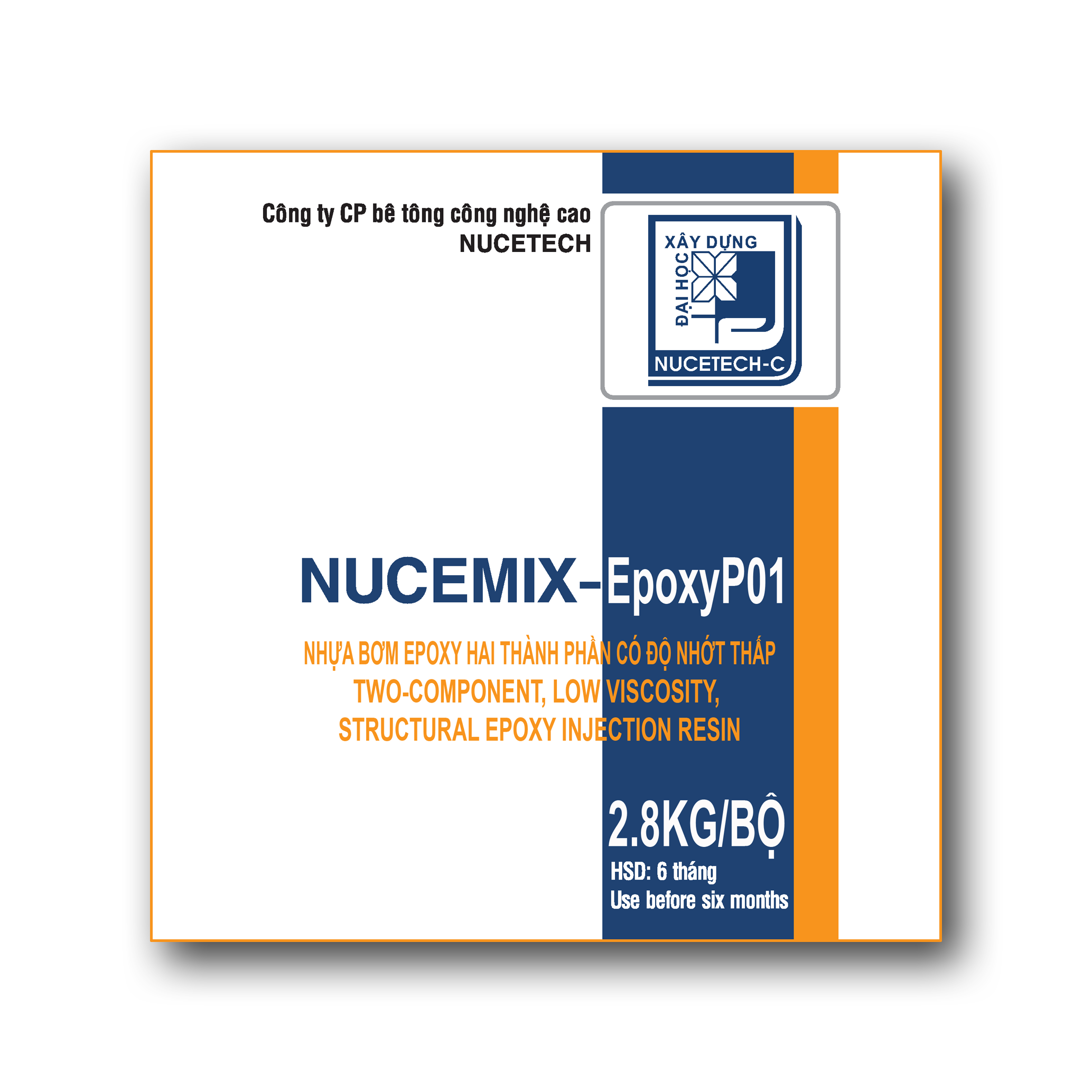 NUCEMIX-EpoxyP01 là sản phẩm gốc epoxy không dung môi, có độ nhớt thấp. Sau khi trộn được bơm vào các lỗ hổng và các vết nứt của các kết cấu như cột, sàn, dầm… nhờ đó phục hồi lại cường độ ban đầu của các kết cấu bê tông.
