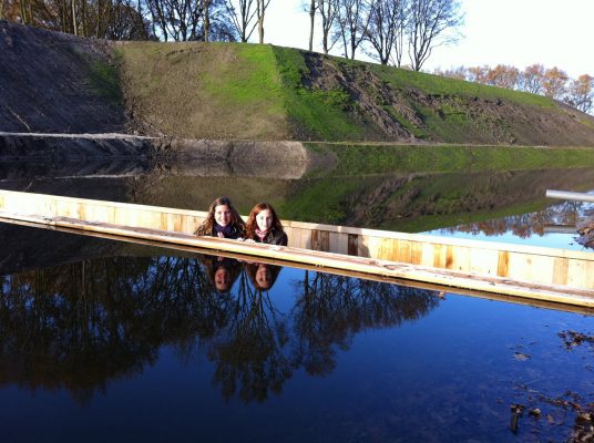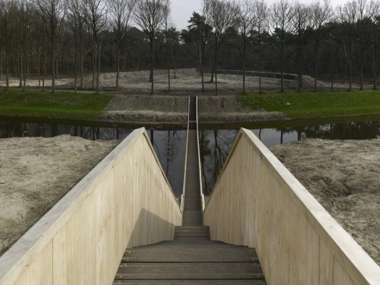 Chắc chắn việc xây dựng cầu bắc qua hào nước của công trình quốc phòng hoàn toàn không phù hợp, đặc biệt là với những thiết kế cầu nổi lên trên. Đó là lý do tại sao đội ngũ thiết kế lại cho ra đời một cây cầu “vô hình”. Kết cấu được làm hoàn toàn bằng gỗ Accoya với lá cao su chống thấm EPDM. Cây cầu ẩn mình như một rãnh nước trong pháo đài và hào nước, hòa quyện với cảnh quan xung quanh.